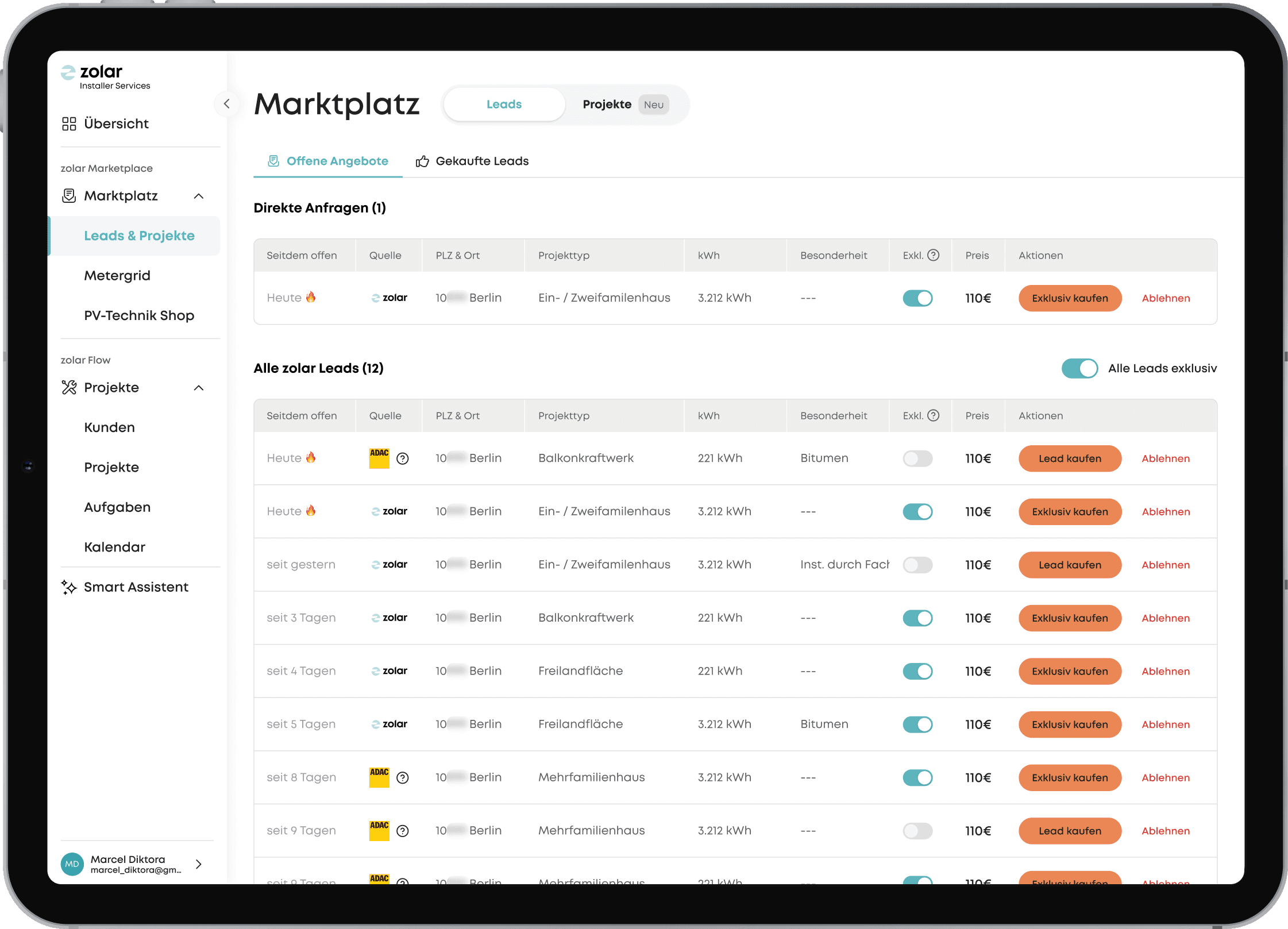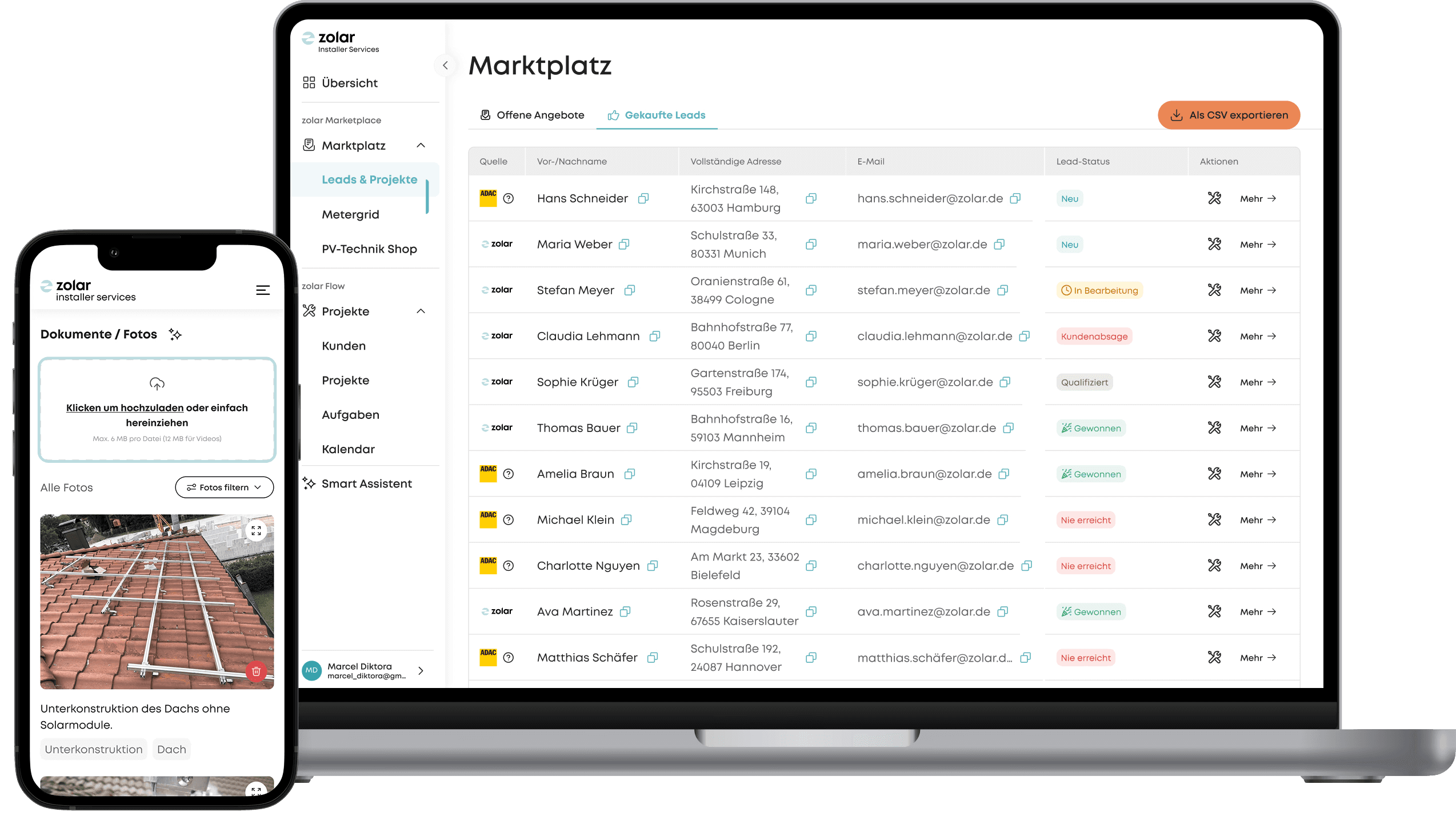 Zugang zu Softwarelösungen entlang deiner Wertschöpfungskette vom Neugeschäft bis zur Installation. Vollständige Verknüpfung aller Informationen und Daten in nur einem einzigen Tool für eine sofortige Entlastung!